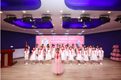 会议开始前,jbo竟博电竞集团为参会的中关村二小学生带来了礼物,孩子们在翻阅中如同找到知己一般,喜悦溢于言表,因为她们看到了可爱的爱心大使元七七同学。当嘹亮的歌声响起,学生代表们在国旗下歌唱、宣言,散发出阵阵青春朝气,也预示着发布会开始。
